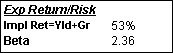 The stock's implied return is calculated by adding a stock's current dividend yield to its estimated long-term EPS growth rate. The implied return is a handy performance measure which could approximate the total annual return (including dividends and capital appreciation) an investor might achieve over the next several years provided the projected growth on EPS actually materializes and the P/E ratio does not change.