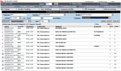 One Click Access Simply enter a ticker to view and print all of the research available on a company.